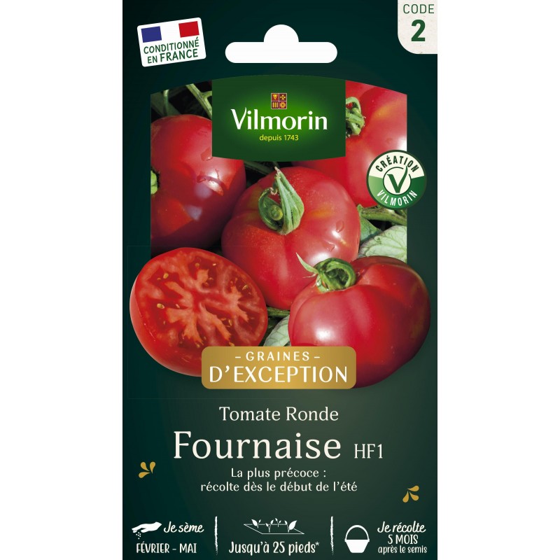 VILMORIN GRAINES D'EXCEPTION-TOMATE Ronde Fournaise HF1 Sachet JUSQU'À 25P CODE 2