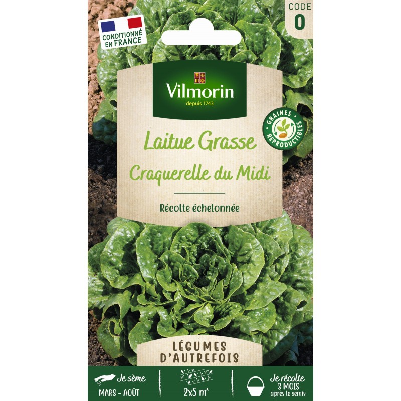 VILMORIN LAITUE Grasse Craquerelle du Midi LÉGUMES D'AUTREFOIS 2X5M SACHET CODE 0