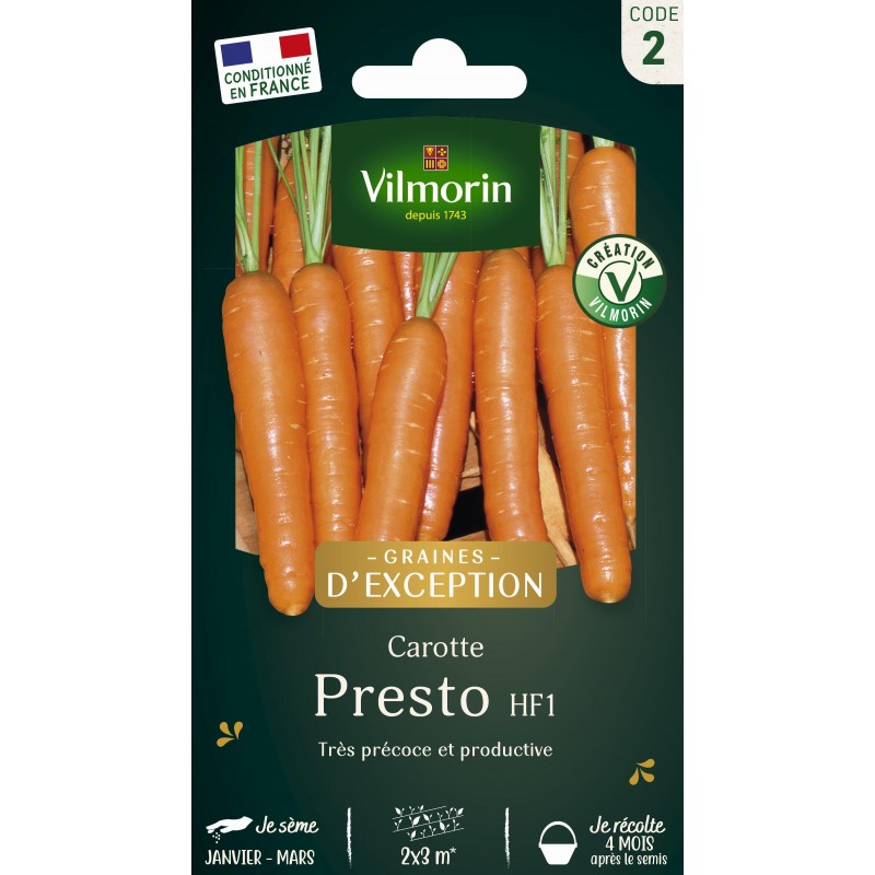VILMORIN GRAINES D'EXCEPTION-CAROTTE Presto HF1 Sachet 2X3M CODE 2