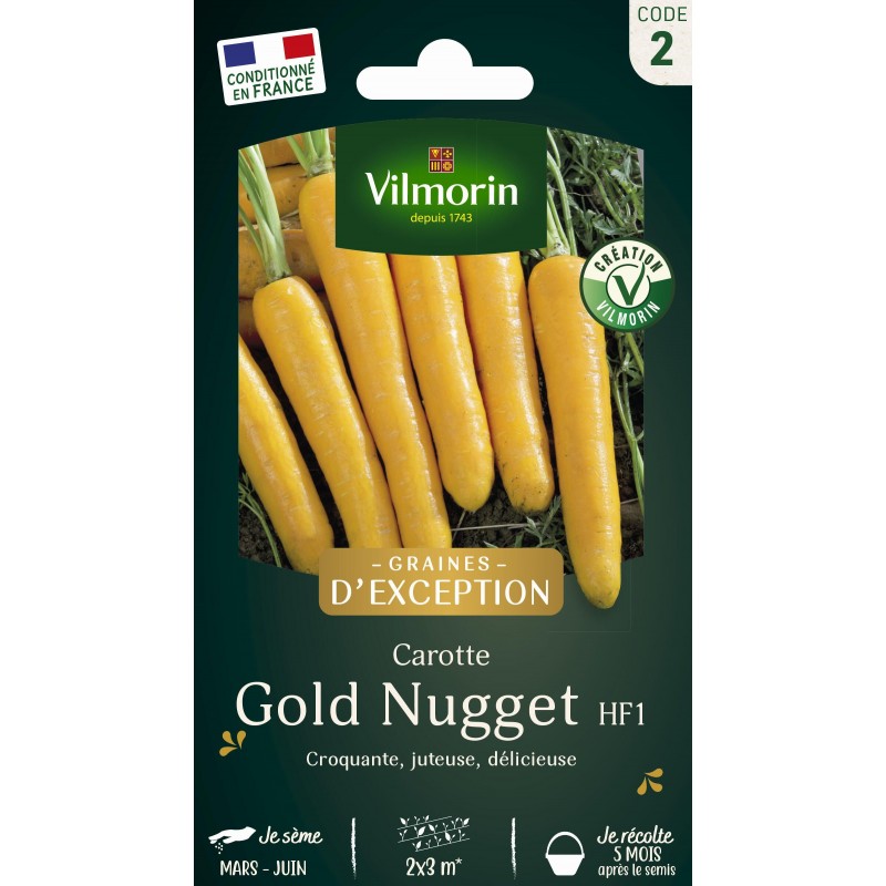 Variété hybride au feuillage vigoureux, donnant de belles carottes longues de 18-20 cm, d'un jaune intense, à la fois croquantes et juteuses, à la saveur douce et très sucrée. Elle offre également une bonne tolérance à la maladie alternariose qui est causée par un champignon qui peut provoquer des brûlures aux feuilles.|