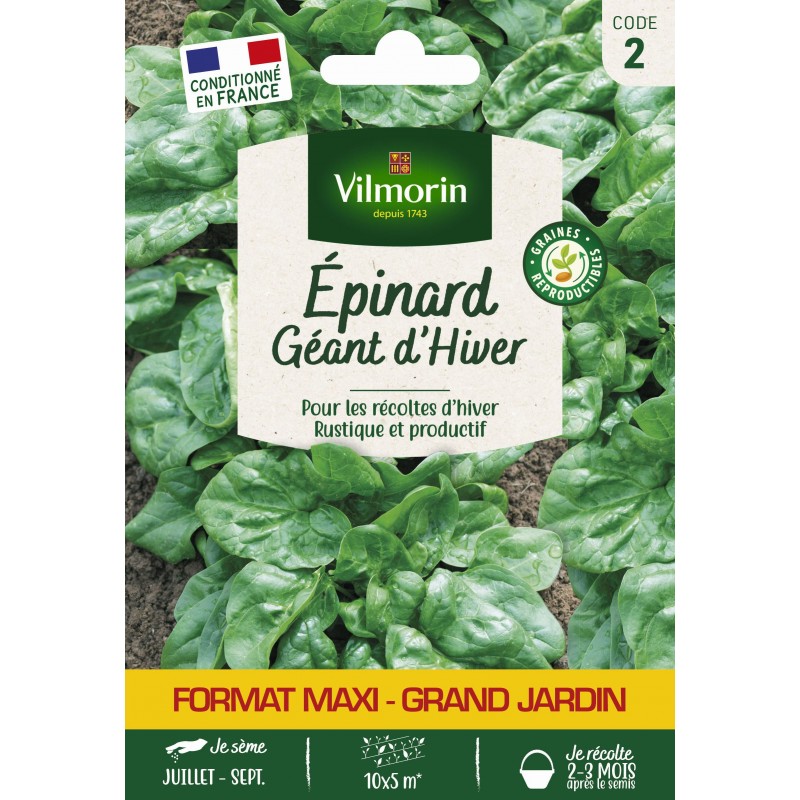 VILMORIN MAXI-GRAND JARDIN-ÉPINARD Géant d'Hiver Sachet 10X5M CODE 2