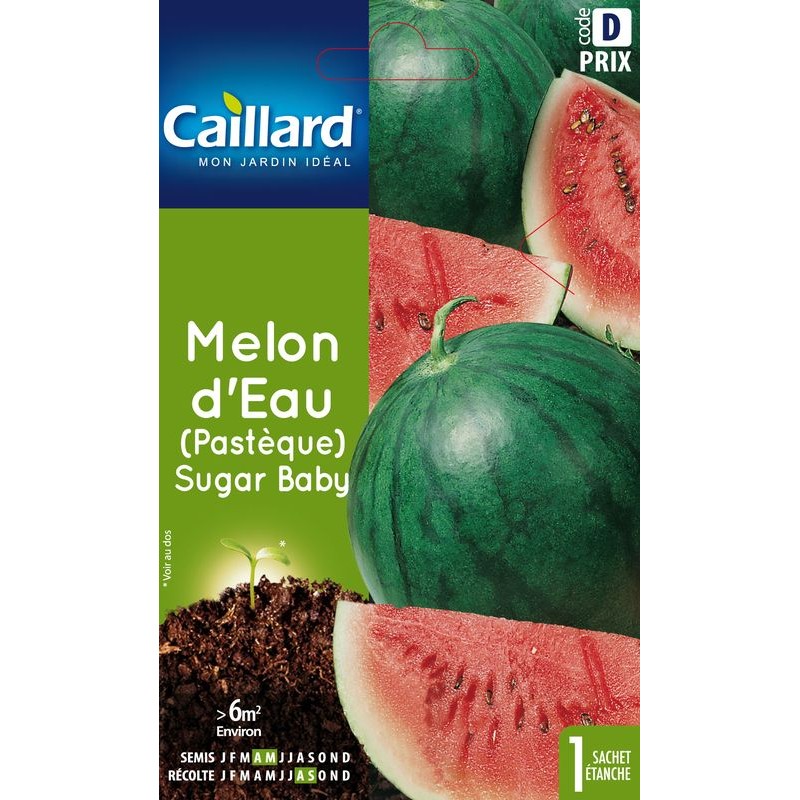 Variété à gros fruit rond dont l'écorce est vert foncé. La chair rouge, juteuse et délicatement parfumée, est très rafraîchissante. |