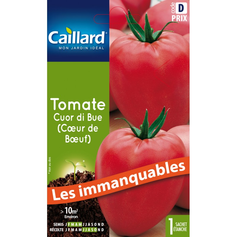 Variété vigoureuse, produisant de très gros fruits (200 à 300 g) rouges et charnus en forme de coeur. Pour culture en pleine terre de saison et d'arrière saison. |