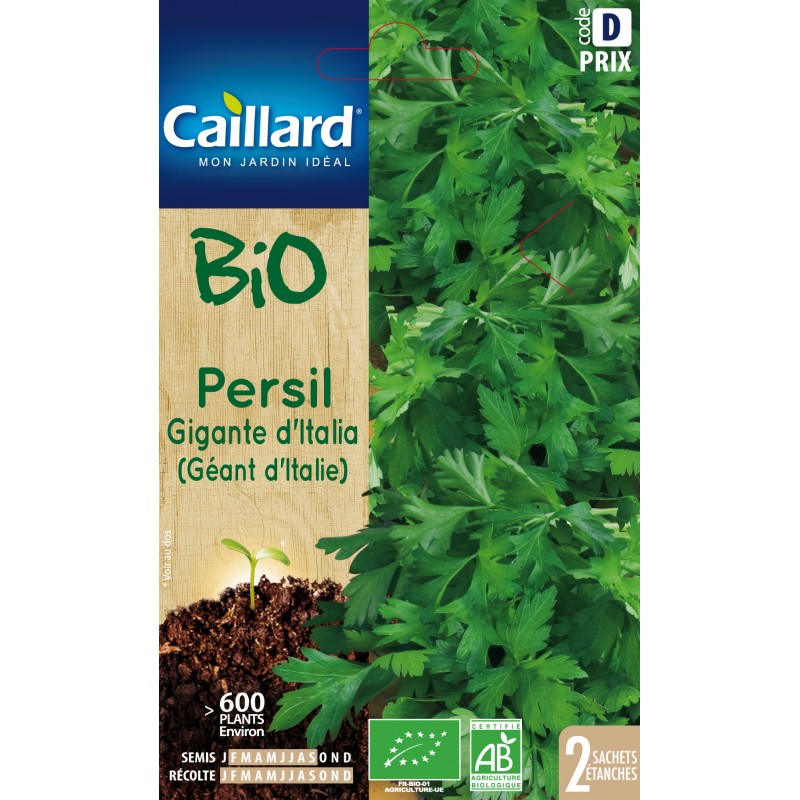 Amélioration du persil commun. Les feuilles sont plus larges et les tiges plus hautes. Très parfumé et très productif. Culture possible en pots ou jardinières, sur terrasses et balcons.|