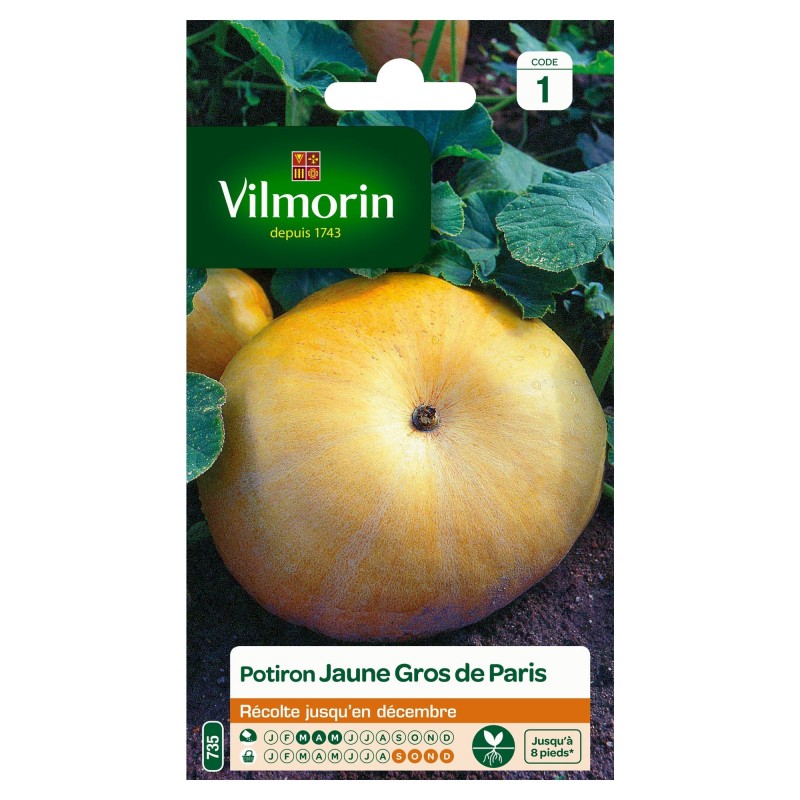 Cette variété produit de très gros fruits à la chair jaune et sucrée. Ces potirons peuvent se récolter jusqu'en décembre.