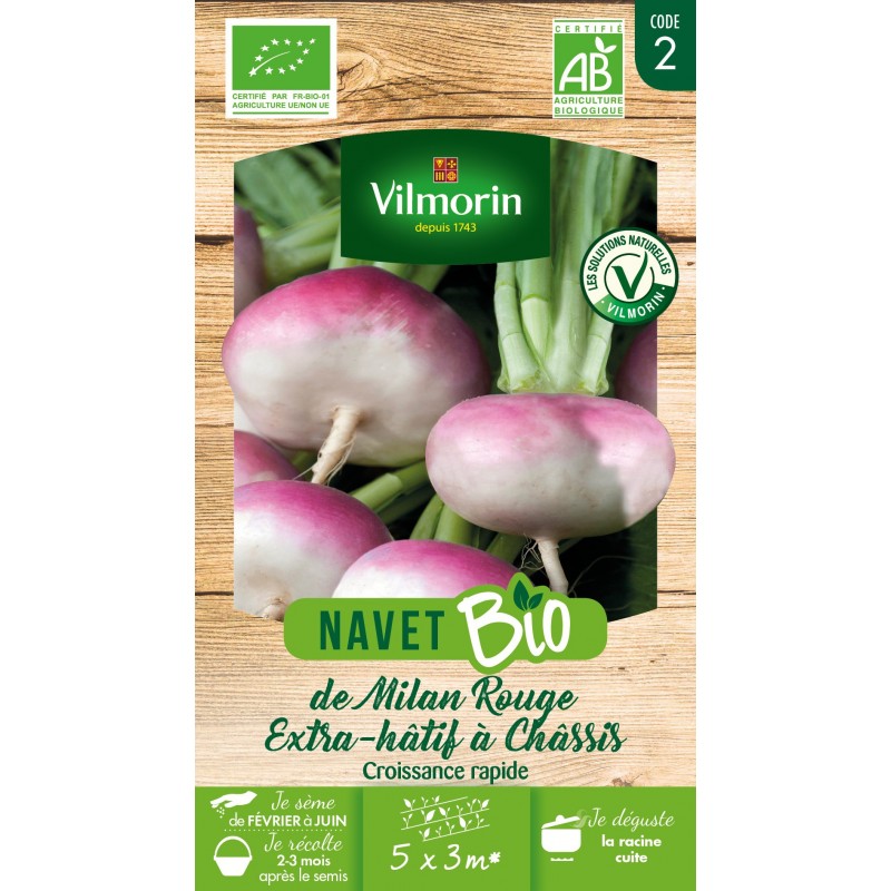 Le navet de Milan Rouge est une variété produisant une belle racine de taille moyenne, aplatie, blanche à collet rouge-rose, et de formation rapide. Sa chair est tendre, douce et de saveur agréable. Précoce, elle se prête à une culture de pleine terre au printemps.