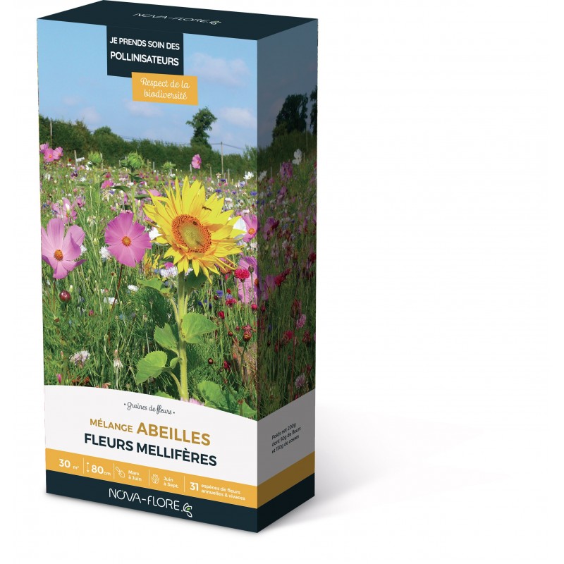 Mélange très rustique et nectarifère, notre prairie fleurie apportera une ressource alimentaire de premier choix dès la 1ère année et au printemps suivant. Notre sélection de fleurs assure une très belle floraison de 2ème année, pour vous et l’ensemble des insectes pollinisateurs.|
