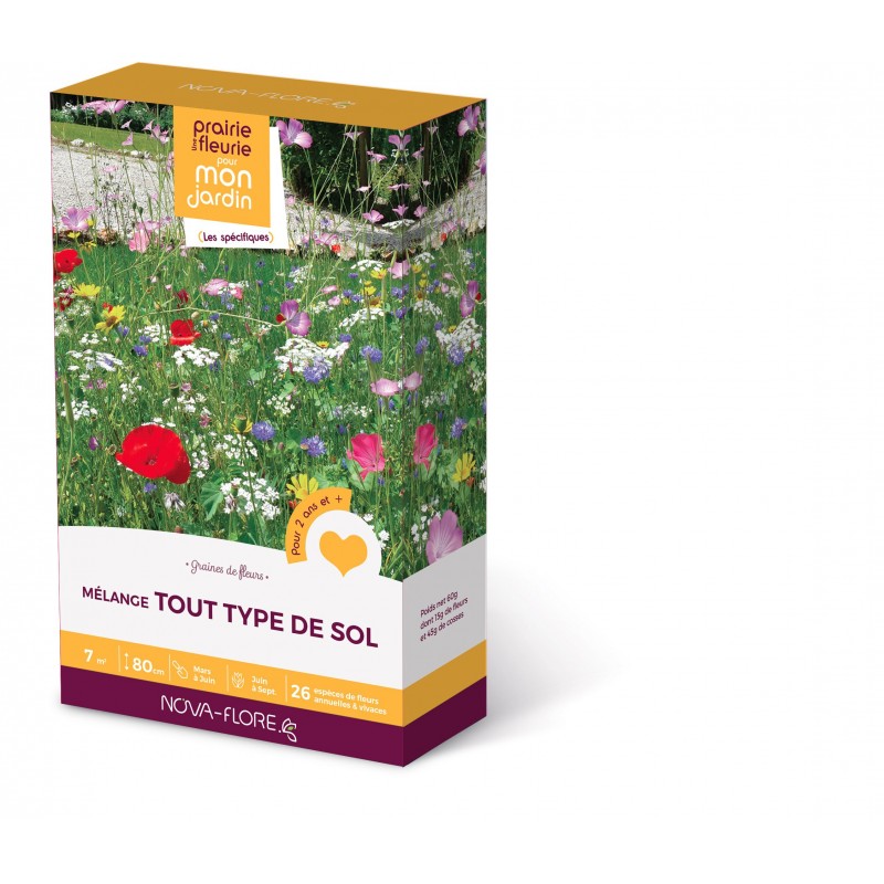 Ce mélange aux teintes pastel permet de réduire les surfaces de tontes et peut s’installer dans tout type de sol. La repousse des fleurs vivaces vous permettra d’obtenir une très belle floraison le printemps suivant.|