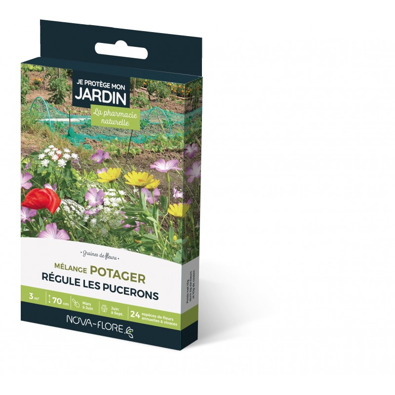 Notre mélange est utilisé par les professionnels pour restaurer des équilibres écologiques et lutter naturellement contre les ravageurs. Installées pour plusieurs années à proximité du potager, les fleurs attirent les insectes comme les pucerons mais aussi leur prédateur comme la coccinelle. Un moyen efficace de repousser les indésirables hors du potager.|