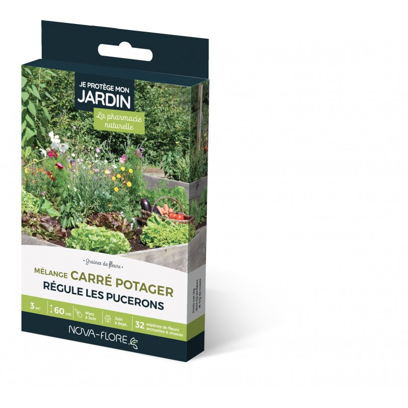 La prairie fleurie ' Carré potager ' est une sélection d’espèces courtes et de fleurs aux ressources polliniques comme les Echiums et la Centaurée. Vous profiterez ainsi d’une belle floraison tout en attirant les auxiliaires indispensables pour protéger vos fruits et légumes de l’été.|