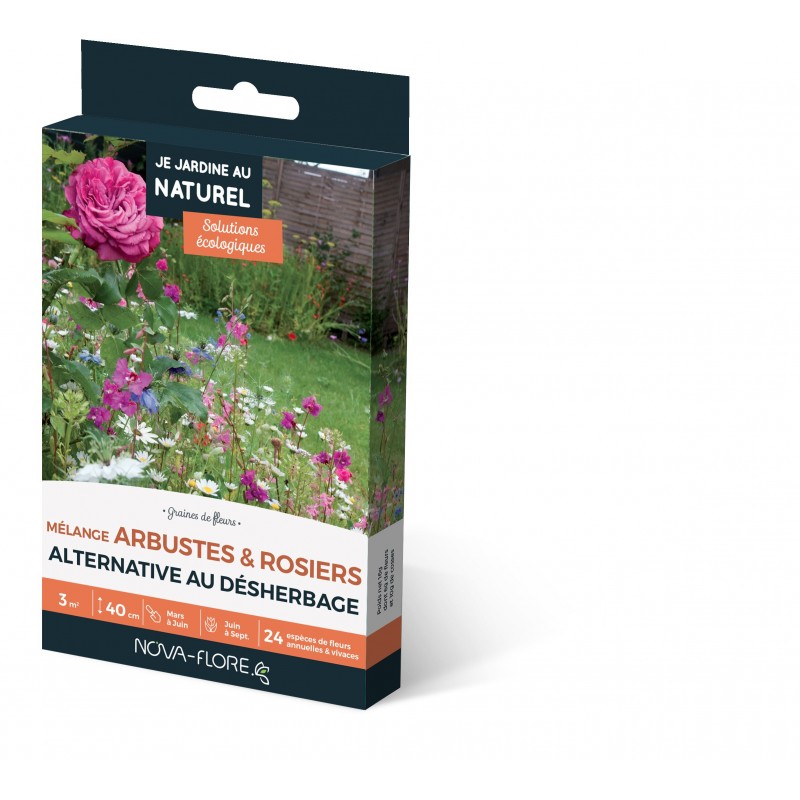 Ne désherbez plus sous les rosiers et arbustes et profitez de notre mélange couvre-sol. La floraison des fleurs accompagnera celle de vos rosiers et vous permettra de moins traiter contre les pucerons.|