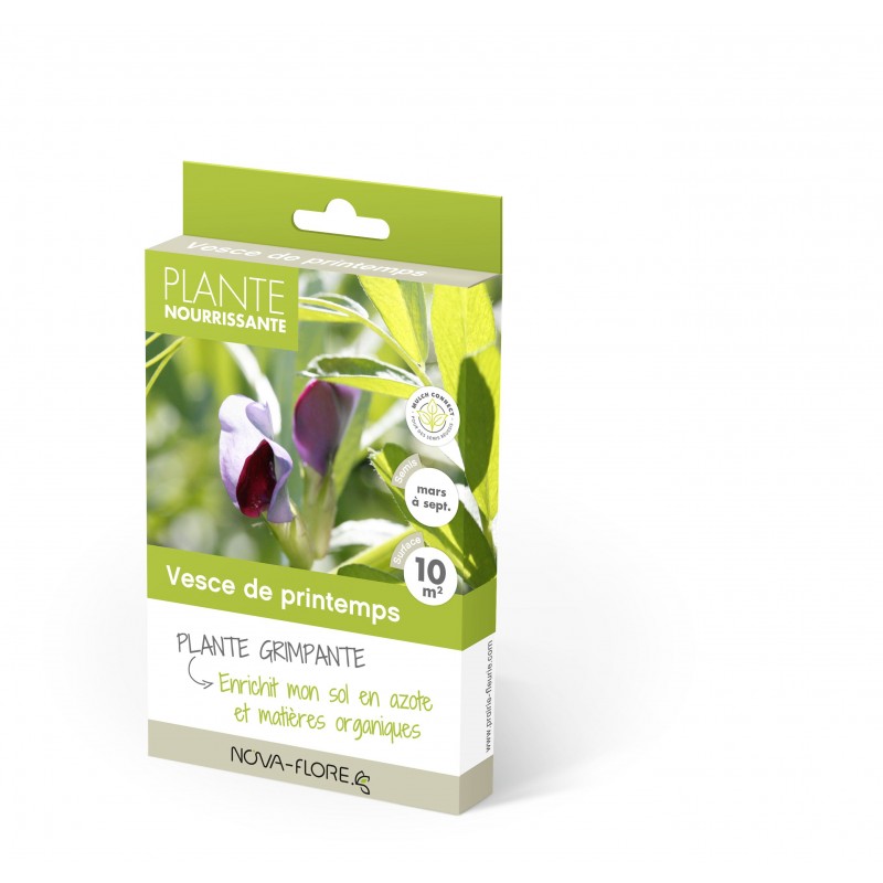 Restitue de l'azote et des matières organiques dans mon sol et permet de réduire l'utilisation d'engrais. Excellent couvre-sol, la vesce retient les éléments nutritifs de mon sol lors des intempéries. Empêche la pousse des herbes indésirables et diminue l’entretien de mon potager|