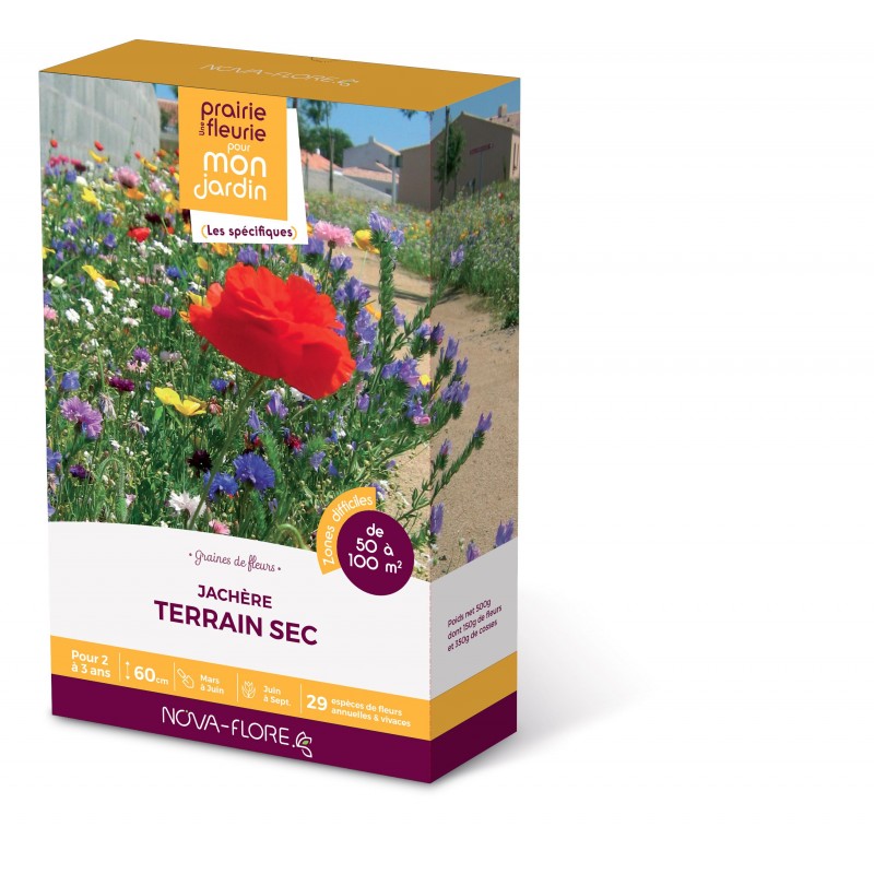 Adapté aux terrains séchants et à tout type de structure de sol, le mélange spécial Terrain Sec offre une très belle floraison dès la première année.|