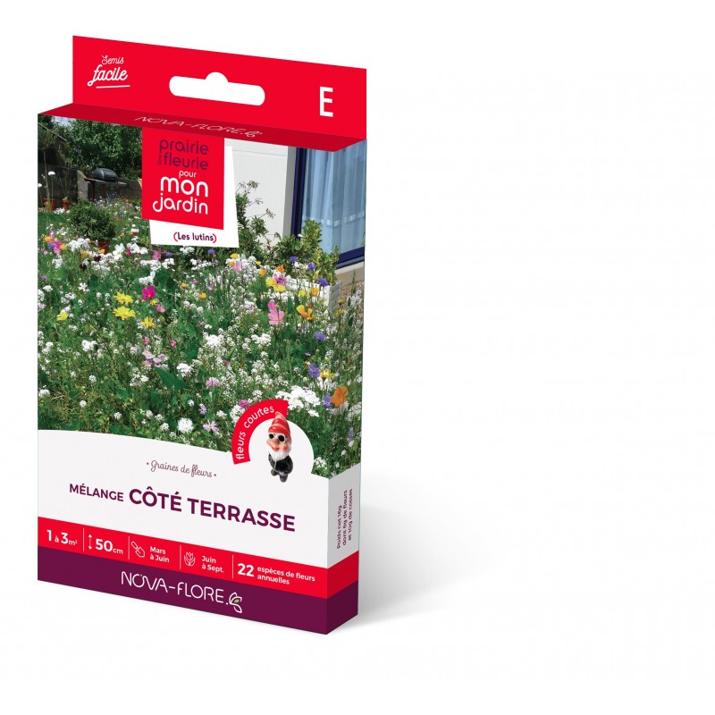 Ce mélange court et tapissant apporte une note champêtre et colorée aux abords de terrasse. Une longue et lumineuse floraison en arrière saison avec la présence des cosmos nains et des layias… Idéal pour profiter longuement de sa terrasse !|