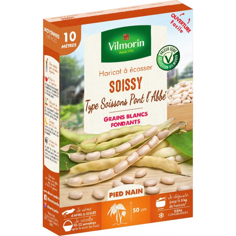 Cette variété très rustique donne de gros grains blancs en forme de rognons, à la peau très fine.Pour une consommation en grains frais ou demi-secs, cueillez quand les gousses jaunissent sensiblement.Pour des grains secs, attendez qu'elles soient parcheminées et sèches. Cette boîte contient la juste dose de graines pour semer 10 mètres linéaires de haricots.|