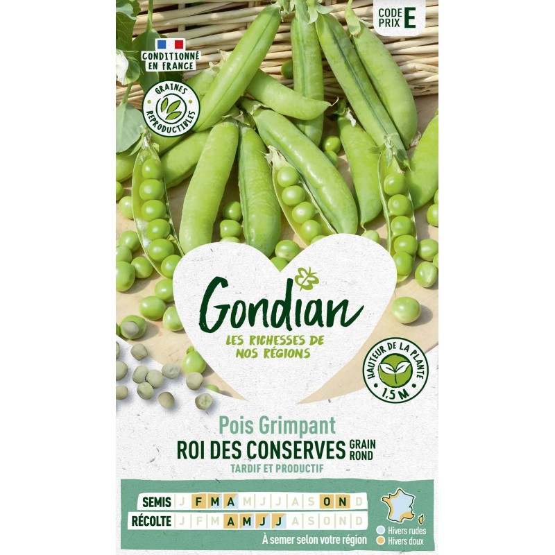Cette variété grimpante. semi-tardive. produit de longues cosses contenant 8-10 grains fins d'excellente saveur. Parfait pour la conserve et la congélation. Résistant au froid. ce pois peut se semer à l'automne dans les régions à hiver doux. |