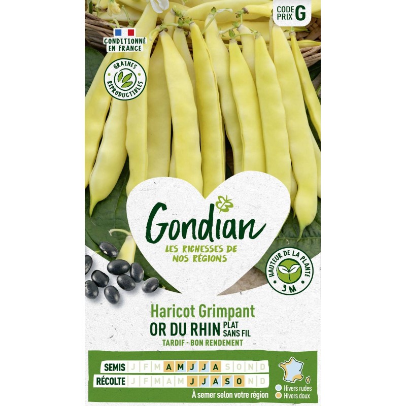Cette variété tardive. rustique et productive. offre de très belles gousses jaune d'or. longues. plates et larges. Charnues et moelleuses. leur texture fait souvent l'unanimité chez les enfants. Cuites sans excès. elles garderont tout leur fondant.|