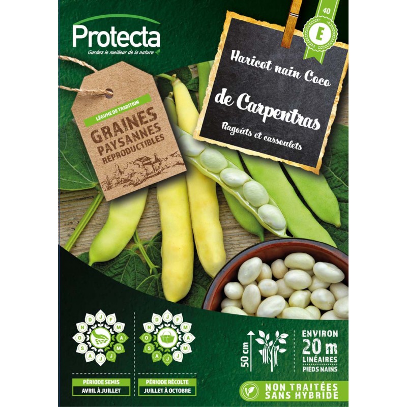 Graines Haricot Nain Coco À Écosser Blanc Précoce 125G-PROTECTA