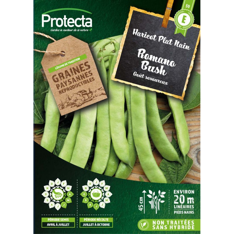 Graines Haricot Plat Nain Romano Busch 125G-PROTECTA