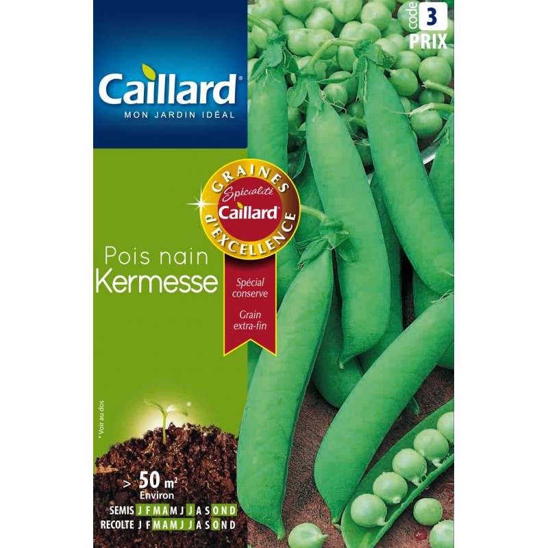 Variété demi-précoce, naine de 55 à 65 cm de hauteur, à grain lisse, vert clair. Amélioration du Petit Provençal. Les gousses contiennent 7 à 9 grains extra-fins" d'excellente qualité gustative. Récolte abondante et groupée. Résiste aux maladies classiques des pois. Recommandée pour la consommation en frais et la conserve.|