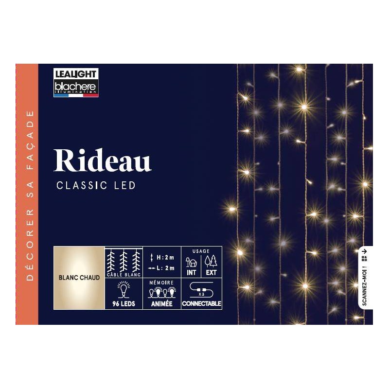 Rideau Led Connectable Blanc Chaud Câble Blanc 12V Clignotant/Pour Intérieur Et Extérieur 2X2M-96L-BLACHERE