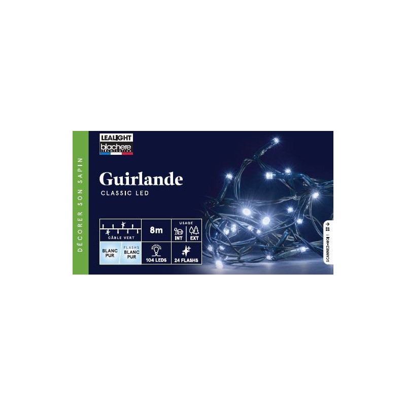 Guirlande Flicker Light®Led Blanc Pur/Flash Câble Vert 31V Ampoules Flash/Pour Intérieur Et Extérieur 8M-128L-BLACHERE