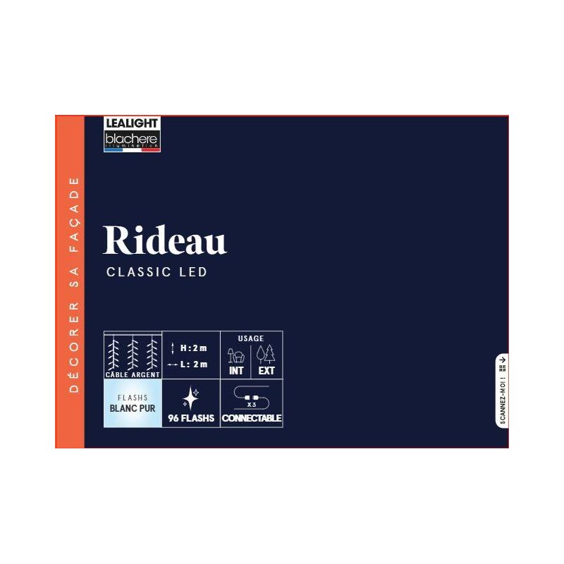Rideau Led Connectable Blanc Pur Câble Argent/Transparent 24W Ampoules Flash/Pour Intérieur Et Extérieur 2X2M-96L-BLACHERE