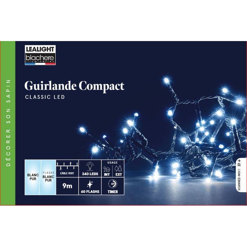Guirlande Flicker Light®Led Compact Blanc Pur Câble Vert 24W Ampoules Flash/Pour Intérieur Et Extérieur 9M-400L-BLACHERE