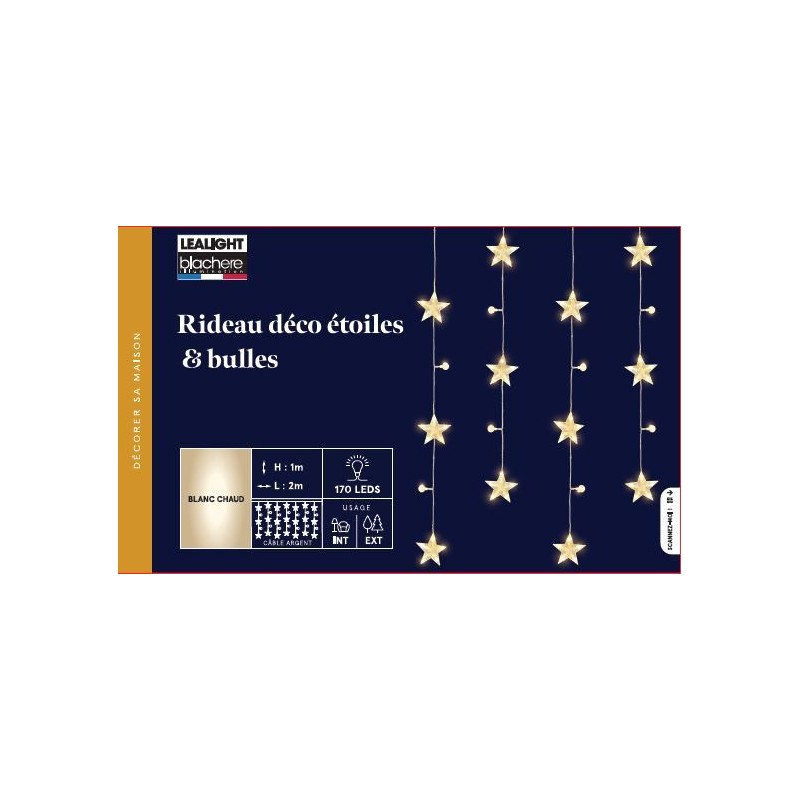 Rideau Deco Étoile & Bulles Led Blanc Chaud Câble Argent/Transparent 31V Fixe/Pour Intérieur Et Extérieur 1X2M-170L-BLACHERE
