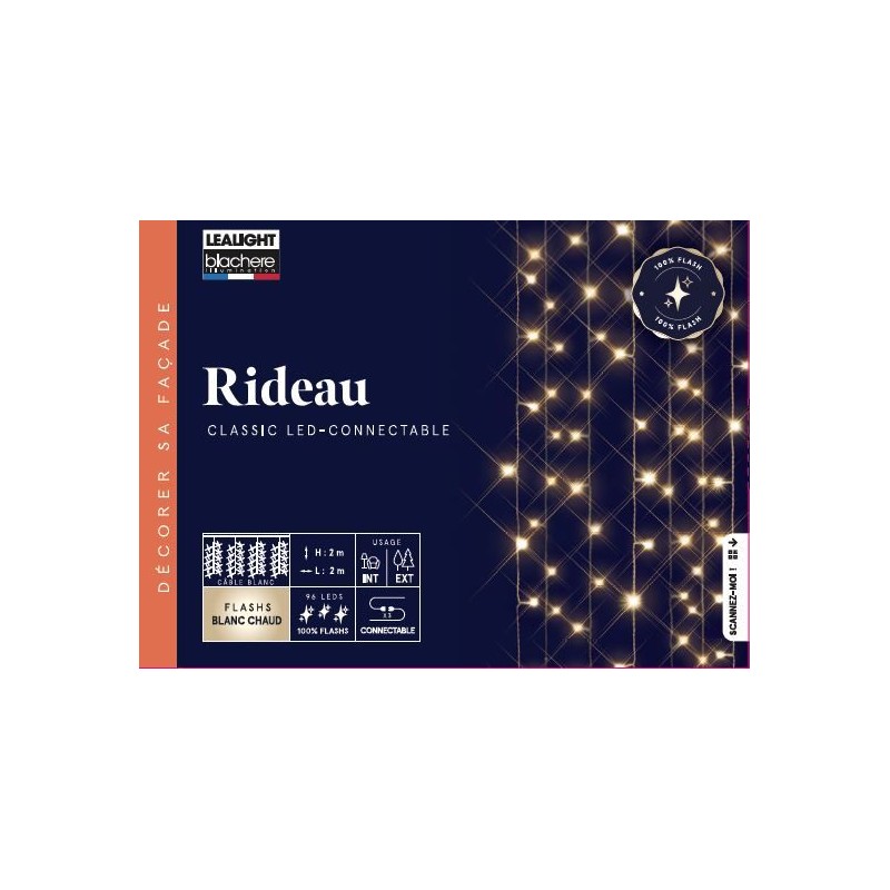 Rideau Led Connectable Blanc Chaud/Blanc Chaud Câble Blanc 24W Ampoules Flash/Pour Intérieur Et Extérieur 2X2M-96L-BLACHERE