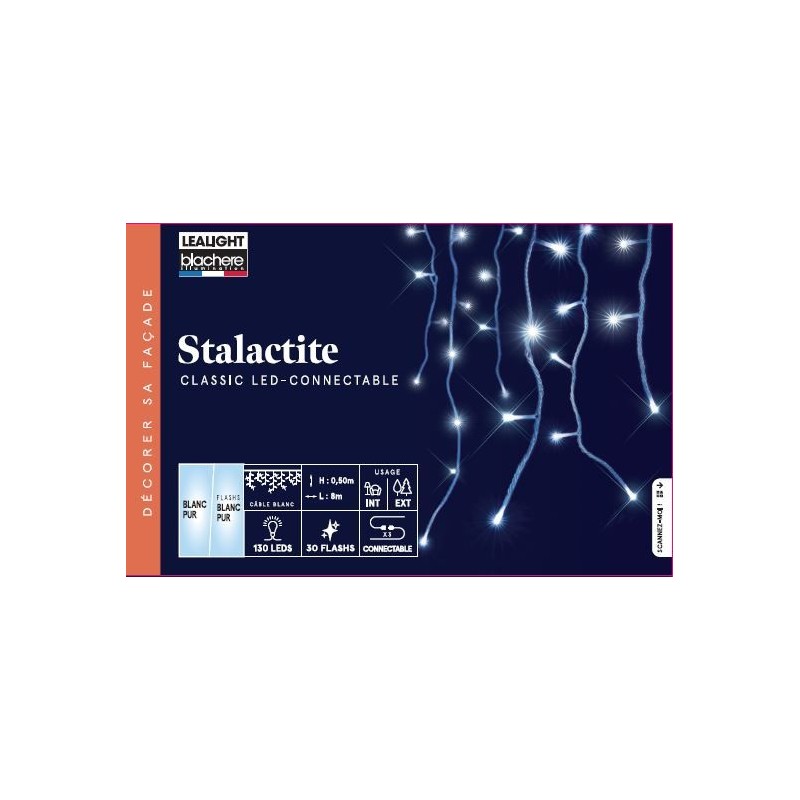 Stalactite Led Connectable Blanc Pur/Flash Câble Blanc 24W Ampoules Flash/Pour Intérieur Et Extérieur 0.5X8M-130L-BLACHERE