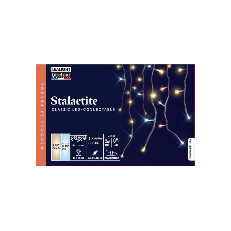 Stalactite Led Connectable Blanc Chaud/Flash Câble Blanc 24W Ampoules Flash/Pour Intérieur Et Extérieur 0.5X8M-130L-BLACHERE