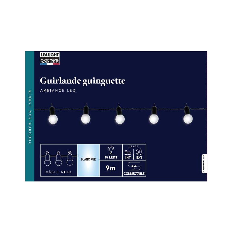 Guirlande Guinguette Led Blanc Pur Fixe/Pour Intérieur Et Extérieur 9M-15L-BLACHERE