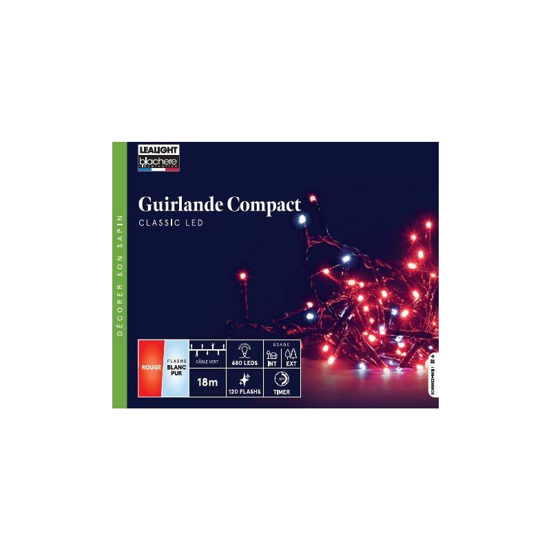 Guirlande Flicker Light® Led Compact Rouge/Blanc Pur Ampoules Flash/Pour Intérieur Et Extérieur 18M-680L-BLACHERE