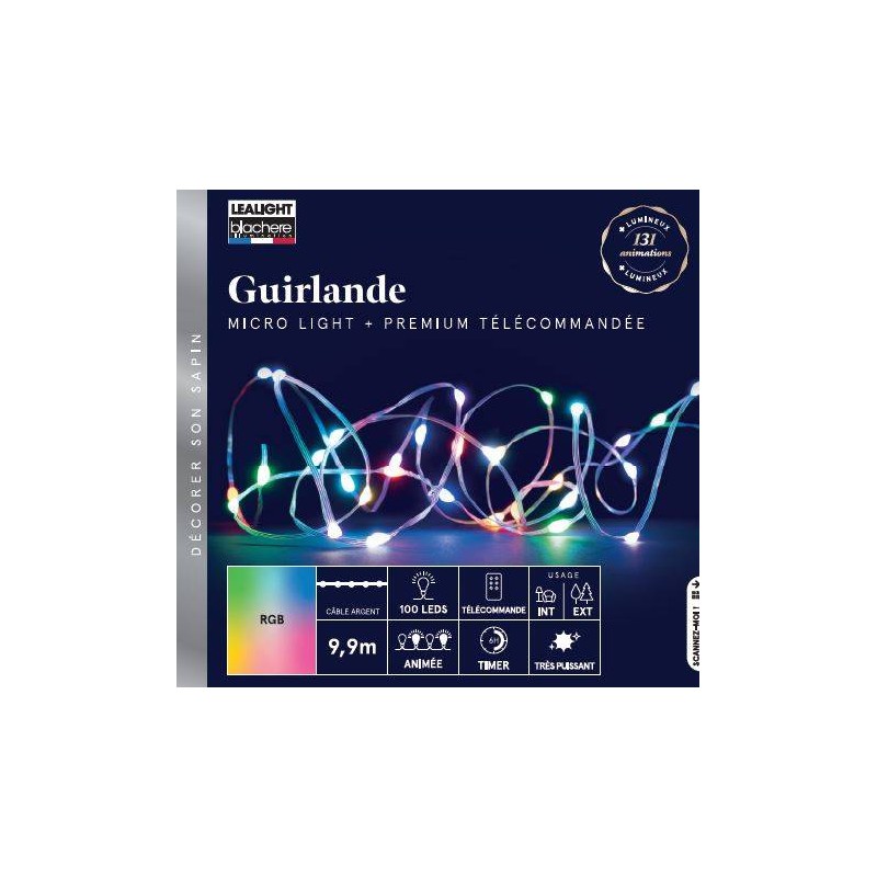 Guirlande Micro Led Light Prenium Télécommandé Rgb Clignotant/Pour Intérieur Et Extérieur 9.9M-100L-BLACHERE
