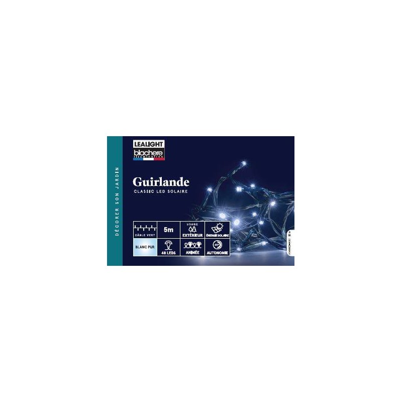 Guirlande Solaire Led Blanc Pur Câble Vert 1.2V Clignotant/Pour Extérieur 5M-48L-BLACHERE