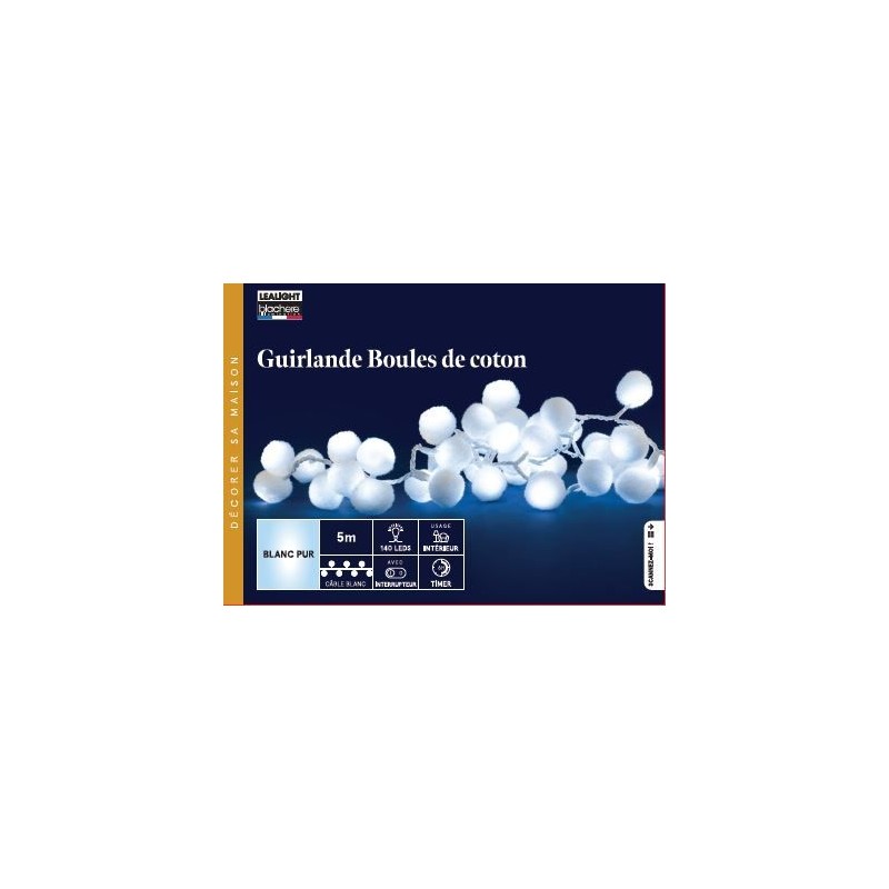 Guirlande Boules De Coton Led Blanc Pur Câble Blanc 24W Fixe/Pour Intérieur 5M-140L-BLACHERE
