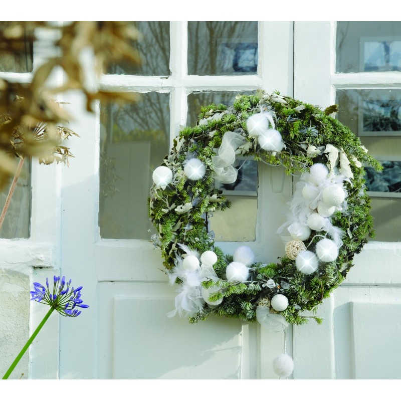 Créez une jolie décoration de Noël avec cette guirlande ornée de boules en velours blanc