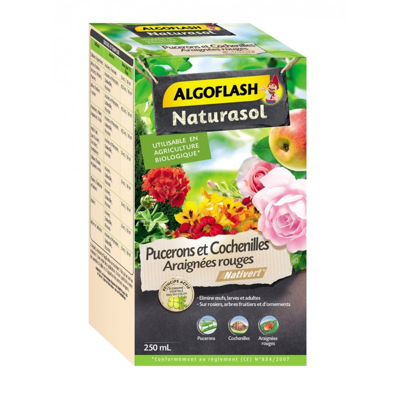 Insecticide concentré à base d?huile de colza. Destruction rapide des pucerons et araignées rouges sur rosiers, fruits, arbres, arbustes, et plantes d'intérieur. L'huile enrobe l'insecte et l'asphyxie. Grâce à son mode d'action mécanique, il est sans phénomènes de résistance. Élimine oeufs, larves et adultes. Utilisable en Agriculture Biologique*. Délai avant récolte 1 jour.