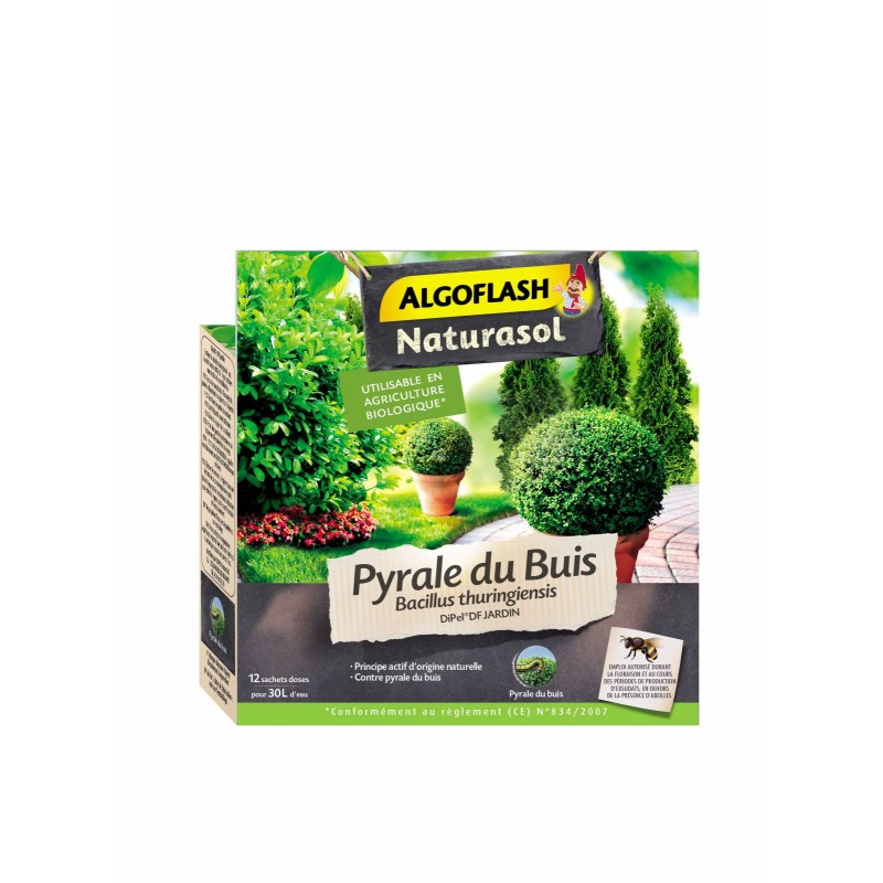 Insecticide biocontrôle contenant du Bacillus Thuringiensis. micro-organisme agissant par ingestion contre la pyrale du buis. Agit par ingestion Utilisable en Agriculture Biologique*.