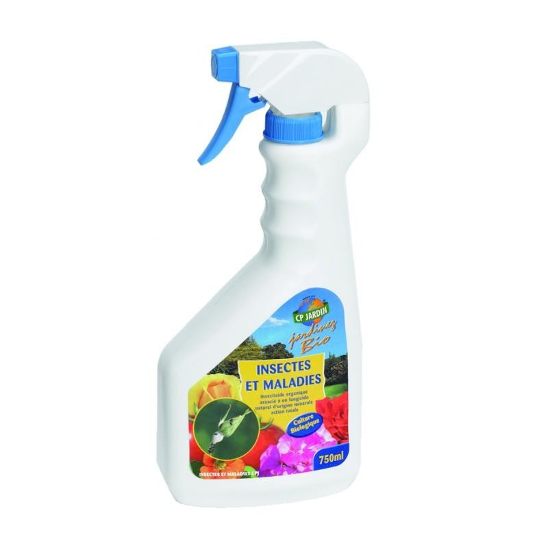 Insecticide organique associé à un fongicide naturel, produit prêt à l'emploi à action totale.