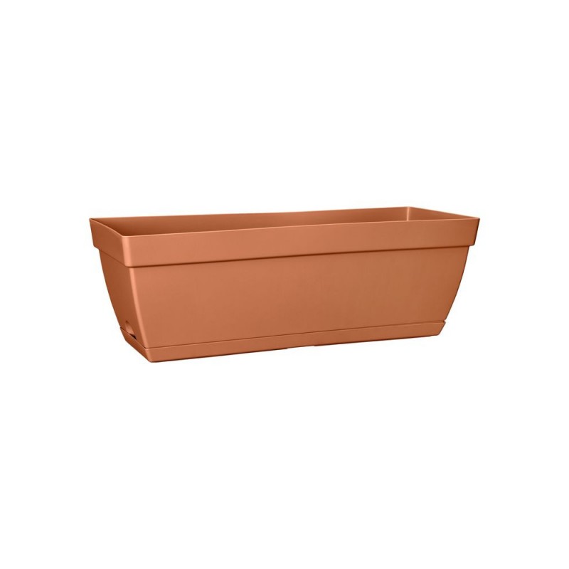 Une vasque de balcon moderne et contemporaine avec un design caractérisé par des contours nets et fins, combinés à un rebord robuste. Une soucoupe intégrée facilite l'arrosage de vos plantes.