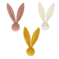 Ls petites balles hochets lapins de 6 cm sont toutes douces et faciles à manipuler pour les petites mains. Les couleurs proposées sont l'ocre, le crème et le terracotta. Chacune des balles contient un grelot à l'intérieur, ce qui peut aider à stimuler les tout-petits lorsqu'ils jouent. Les grandes oreilles de lapins permettent également de les accrocher facilement à la poussette, au cosy, au berceau ou encore sur le sac à langer, pour suivre bébé partout. Ces balles sont indispensables pour divertir les bébés dès la naissance. Elles sont présentées de manière élégante dans un joli display. Lavage en machine à 30°.