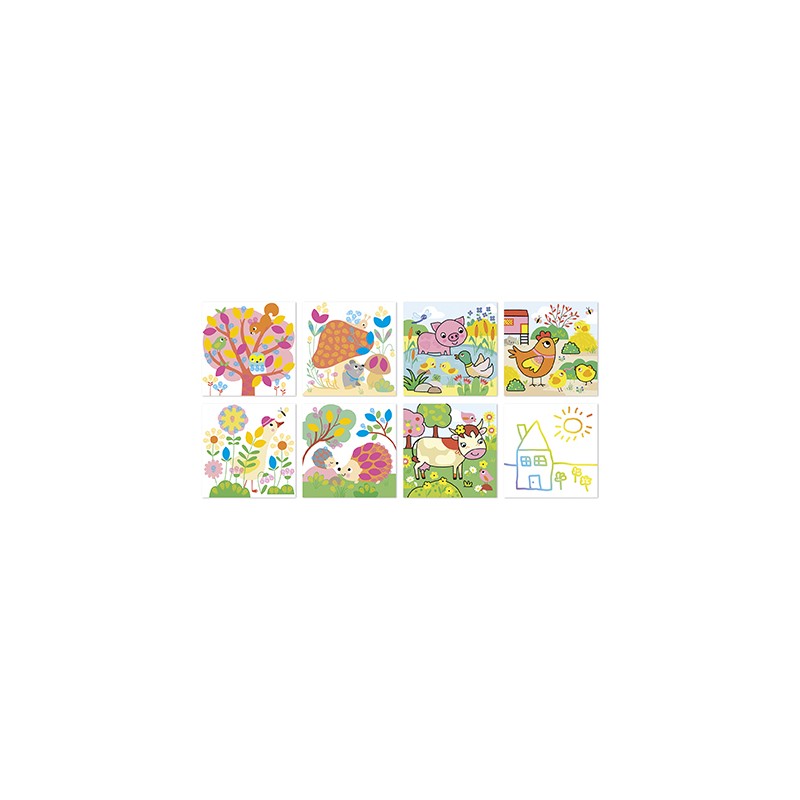 Décore et colorie de jolis tableaux animaux ! Ce coffret multiactivités permet de réaliser 4 tableaux à compléter avec de l'encre à doigts et 1 tampon, ainsi que 2 tableaux recto/verso à colorier avec un feutre à eau. Le feutre à eau est magique : les couleurs disparaissent lorsqu'elles sèchent ! Les enfants peuvent recommencer à l'infini Il faut environ 30 minutes pour colorier un tableau peinture magique et 1h30 pour les tableaux encriers. Ce kit permet de développer la motricité fine et la concentration. Il est adapté aux enfants à partir de 3 ans.