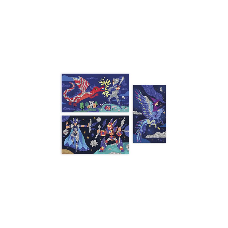 Donne vie à tes héros préférés ! Ce coffret se compose de 3 tableaux. À l'aide de la spatule, les enfants pourront décoller les parties autocollantes et appliquer les paillettes de la bonne couleur selon les indications du livret pas à pas. 2 tubes de paillettes sont fournis. 30 minutes sont nécessaires pour finaliser un tableau. Cette activité développe la motricité fine et la concentration. Idéale pour les enfants à partir de 6 ans.