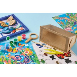 Deviens un véritable explorateur du jardin ! Cette mallette contient tout le nécessaire pour réaliser 5 activités variées sur le thème de la nature et des petites bêtes du jardin. Elle contient 1 observatoire en bois à assembler et à peindre, 6 godets de peinture de 5ml chacun, 1 pinceau, 1 morceau de gaze, 1 pince à épiler, 1 loupe en bois, 2 tableaux de peinture au numéro à peindre, 1 poster à gratter, 1 outil en bois, 3 planches prédécoupées et 1 cadre à assembler pour créer un tableau d'insectes en 3D, 1 feuille de pastilles de mousse autocollante et 1 leaflet avec les instructions, les modèles et du contenu sur les petites bêtes du jardin. Cette activité permet de développer son imagination et sa créativité et convient aux enfants à partir de 7 ans.