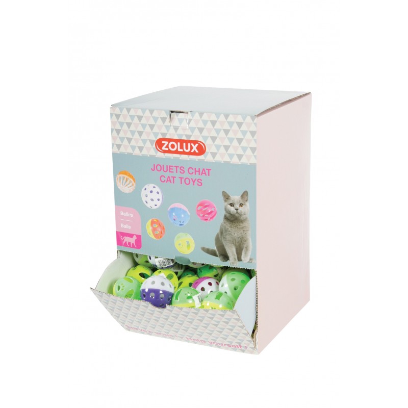 Les jouets incontournables pour chat!Display balles: 6 modèles de balles à grelot différentes.Displays prêts à vendre: moins d'emballages, moins de déchets.Chaque jouet est stické avec un gencod pour le passage en caisse.|