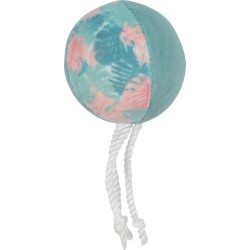 Jouet éco-conçu pour chat ETHI'CAT. Jouet balle en tissu recyclé. Tissu avec motif feuille. Fabriqué à partir de 88% minimim de matières recyclées (dont polyester recyclé). Contient de l'herbe à chat pour plus d'attractivité.|