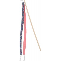 Jouet éco-conçus pour chats ETHI'CAT. Canne à pêche en bambou avec ruban en tissu recyclé. Tissu avec motif fleur. Fabriqué à partir de 28% minimim de matières recyclées (dont polyester recyclé). Contient de l'herbe à chat pour plus d'attractivité. Jouet |