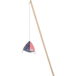 Jouet éco-conçus pour chats ETHI'CAT. Canne à pêche en bambou avec pyramide en tissu recyclé. Tissu avec motif fleur. Fabriqué à partir de 28% minimim de matières recyclées (dont polyester recyclé). Contient de l'herbe à chat pour plus d'attractivité. Jouet |